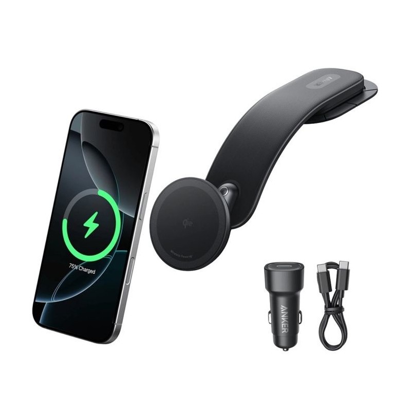 Anker Nano brezžični avtomobilski polnilnik (magnetni, z odstranljivo blazinico), 25 W avtomobilski adapter, USB-C na USB-C kabel dolžine 1 m, 2 trakova na ježka, 2 čistilni krpici, 24-mesečna garancija in prijazna podpora za stranke.f