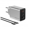Tehnologija GaN (galijev nitrid) omogoča manjšo in učinkovitejšo napravo, ki se manj segreva in zavzame manj prostora, hkrati pa ohranja visoko moč. Kompaktna zasnova, pogosto s prepogljivim ("foldable") vtikačem, zaradi česar je primerna za potovanja. Omogoča hkratno polnjenje do treh naprav, pri čemer se moč razporedi glede na število in vrsto priključenih naprav. Podpira več protokolov za hitro polnjenje, kot so PD (Power Delivery), QC (Quick Charge) in podobni, kar zagotavlja združljivost z različnimi telefoni, prenosniki in tablicami.