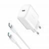 Joyroom USB-C3 polnilec z zmogljivostjo 30 W omogoča hitro polnjenje naprav prek USB-C priključka s podporo za tehnologijo Power Delivery (PD). Polnilec je izdelan iz ognjevarnega polikarbonata, kar zagotavlja zanesljivo zaščito pred pregrevanjem in povečuje varnost med uporabo. V paketu je priložen 1-meter dolg bel USB-C kabel, ki podpira polnjenje z močjo do 30 W. Kompaktna in elegantna oblika je primerna za uporabo doma, v pisarni ali na poti.