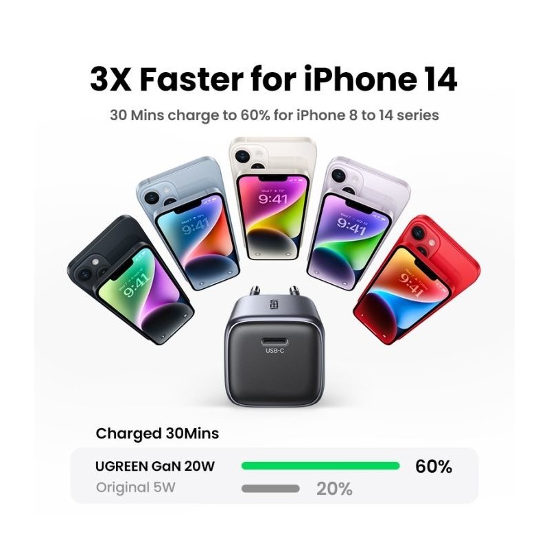 Polnilnik Ugreen Nexode 20W GaN II USB C lahko napolni vaš iPhone 14 od 0-60 % v samo 30 minutah.