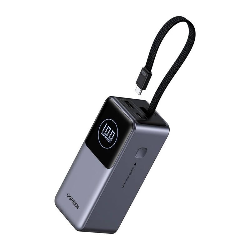 UGREEN 55365B je zmogljiv power bank s kapaciteto 20.000 mAh, ki zagotavlja skupno izhodno moč do 130 W. Namenjen je hitremu in učinkovitemu polnjenju prenosnikov, tablic in pametnih telefonov, kjerkoli ste. Naprava je opremljena z vgrajenim USB-C kablom ter dodatnima priključkoma USB-C in USB-A, kar omogoča hkratno polnjenje do treh naprav.