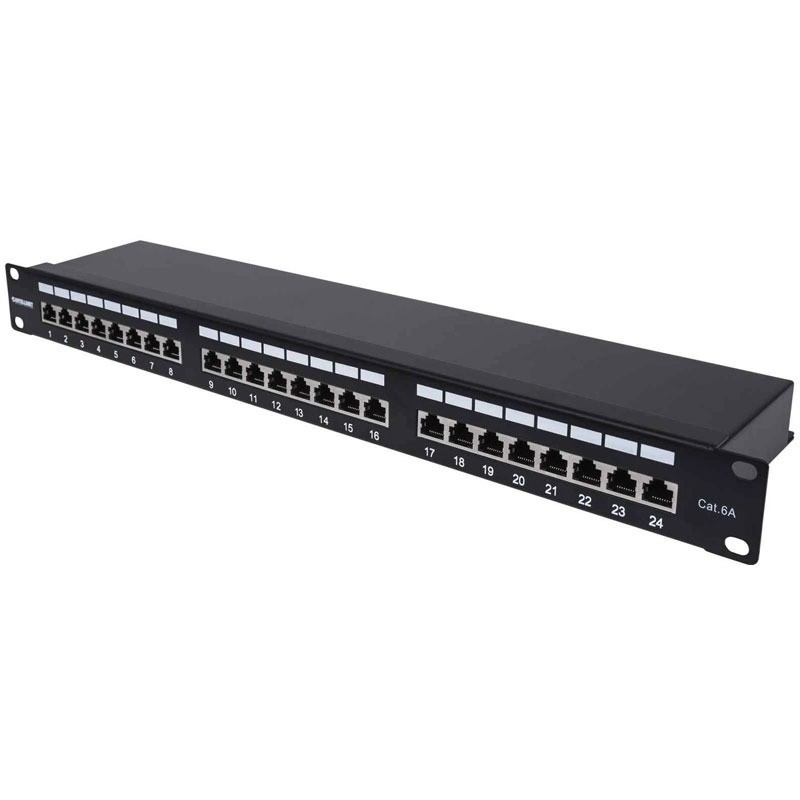 ustreza 19" standardom trdni in zanesljivi zaključki za bakreni kabel, ki vsebujejo najmanj 3-mikronske pozlačene kontakte bloki za prebijanje navzdol poenostavljajo namestitev združljiv je s Kron punch-down orodjem podpira 22 do 24 AWG standarde in solid wire za uporabo z omrežnim kablom shielded twitsted pair (FTP) Cat6a idealno za omrežne aplikacije Ethernet, Fast Ethernet in Gigabit Ethernet povezava v omrežje preko 24x RJ45 portov
