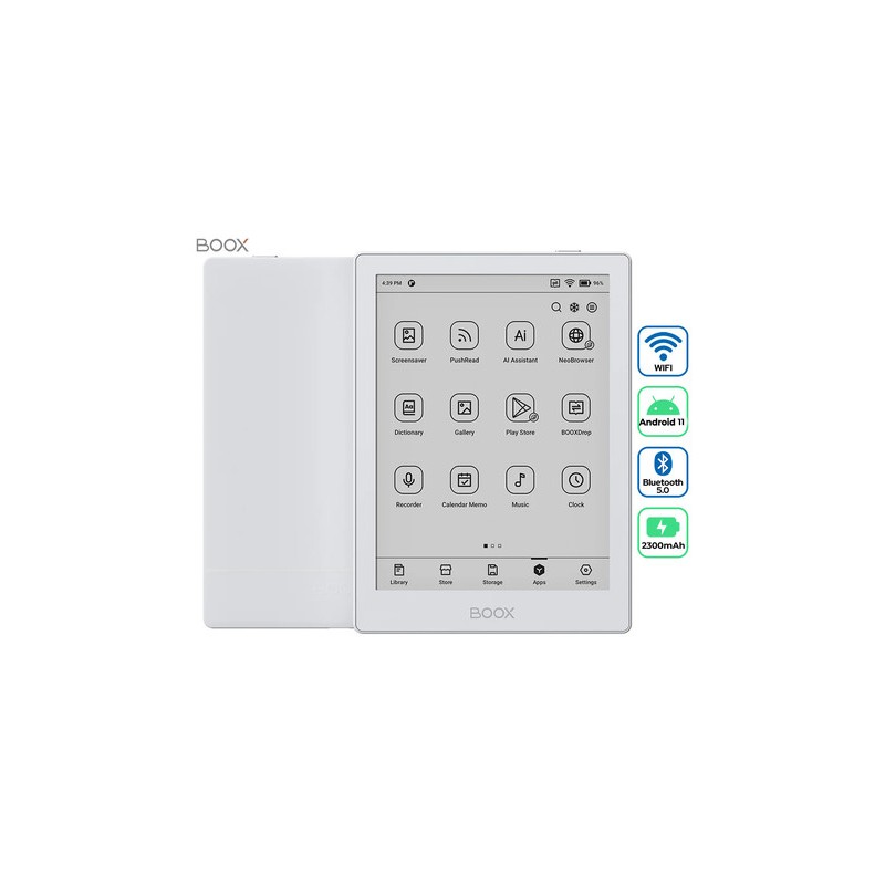 6-palčni zaslon na dotik s tehnologijo E-Ink Carta zagotavlja izjemno jasnost in kontrast pri ločljivosti neverjetnih 300 PPI, kar ustvarja izkušnjo branja, podobno branju na papirju, in zmanjšuje utrujenost oči.