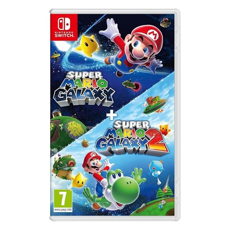 Super Mario Galaxy 2Mario se združi s starim prijateljem in potuje po različnih svetovih na Starship Mario! V Super Mario Galaxy 2 mora Mario znova rešiti princeso Peach. Tokrat mu na pomoč priskoči Yoshi, skupaj pa se odpravita na potovanje po vesolju na Starship Mario – leteči ladji v obliki Mariove glave!