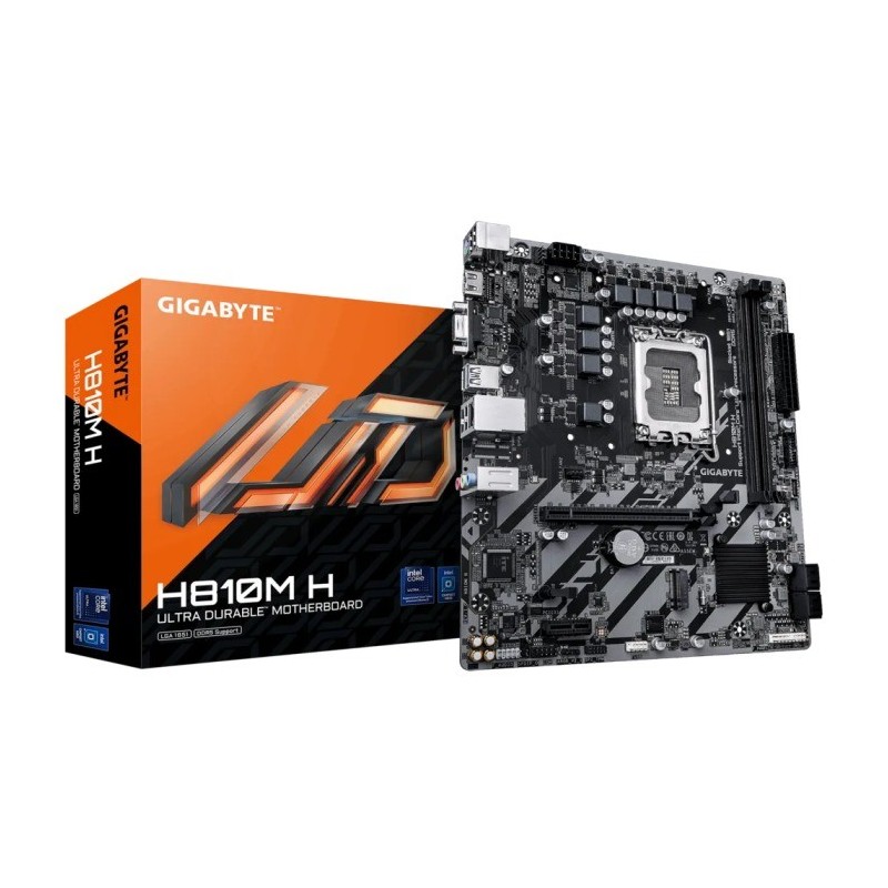 Matična plošča Gigabyte H810M-H je zasnovana za najnovejše Intel Core Ultra procesorje in ponuja zanesljivo ter zmogljivo osnovo za vaš računalnik. Njena Micro ATX oblika (24,4 cm x 21,5 cm) omogoča enostavno namestitev v različne ohišja, medtem ko Intel H810 vezni čip skrbi za stabilno delovanje sistema.