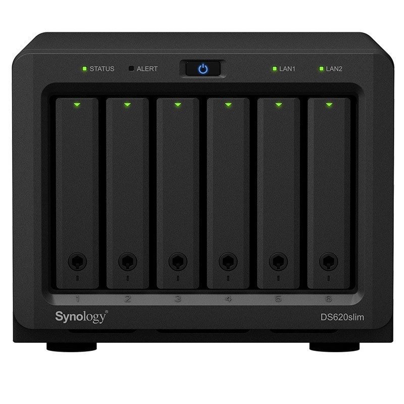 Synology DS620slim je zmogljiv NAS (Network Attached Storage) zunanji diskovni strežnik, ki omogoča povezavo in upravljanje do 6 trdih diskov velikosti 2,5 palca (6,35 cm). Ohišje je kompaktno in primerno za domačo uporabo ali manjša delovna okolja.