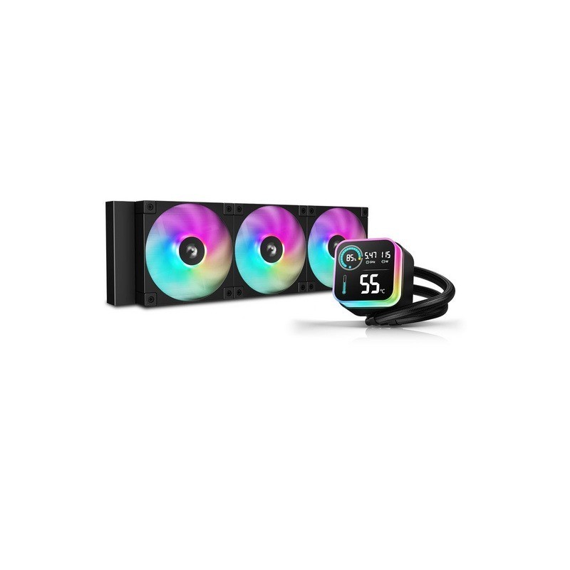 Komplet za tekočinsko hlajenje s 360 mm radiatorjem, tremi FL12 ARGB ventilatorji in črpalko 6. generacije združuje zmogljivost, tiho delovanje in atraktivno osvetlitev. Namenjen je hlajenju sodobnih procesorjev, saj podpira Intel LGA1851, 1700, 1200, 115x ter AMD AM5 in AM4 platforme.