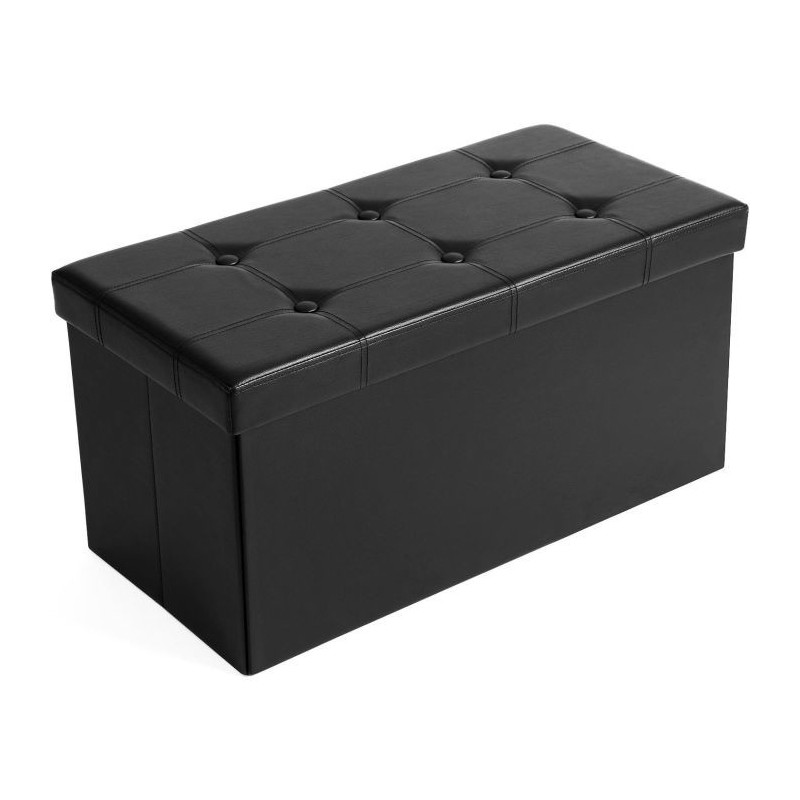 pospravite.Tehnične podrobnosti:Barva: ČrnaDimenzije: 76 x 38 x 38 cmTeža izdelka: 6,1 kgMaterial prevleke: Umetno usnje (100 % poliuretan)Material ogrodja: MDF (iverna plošča)Oblika: PravokotnaNosilnost: Do 300 kgVišina sedeža: 38 cmKapaciteta: 80 litrovMontaža: Potrebna, hitro sestavljivoNavodila za nego: Obrišite z vlažno krpo, nato še s suhoVsebina paketa:1 x tabure s shranjevalnim prostorom (zložljiv)