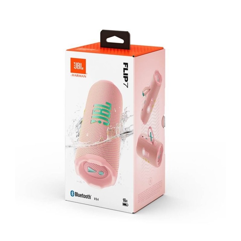 Povezovanje več zvočnikov z Auracast™ Ali ne bi bilo super, če bi lahko vibracije delili s svojo družbo? Zdaj lahko. Z Auracast™ lahko enostavno združite dva zvočnika Flip 7 v stereo paru za širši zvočni prostor in povežete več JBL zvočnikov, ki podpirajo Auracast™, da pokrijete še večji prostor z isto glasbeno izkušnjo.Vodoodporen, odporen na prah in padce Ste že kdaj spustili zvočnik, da se je odkotalil po prašnati klančini in končal v jezeru? Ne? No, verjeli ali ne – to se dogaja. Zato smo JBL Flip 7 zasnovali tako, da prenese skoraj vse. Poleg legendarne vodoodpornosti in odpornosti na prah (IP68, ena najvišjih zaščitnih stopenj v industriji) smo poskrbeli tudi za to, da bo zdržal padec z višine enega metra na betonska tla. A prosimo – ne mečite ga okrog samo zato, da bi se pohvalili pred prijatelji. Raje organizirajte zabavo. Na podlagi laboratorijskih testov za potopitev do 1,5 metra globine v sladki vodi za največ 30 minut.PushLock sistem z zamenljivimi dodatki Pripnite ga. Zankajte ga. Nosite ga v roki. Zdaj lahko svoj zvok nosite na svoj način zahvaljujoč novemu sistemu PushLock za zamenljive dodatke. Vsa ta moč z enim samim klikom – zapestni trak in karabin sta priložena v paketu.Predvajanje zvoka brez izgub (Lossless Audio) Ko glasba postane brez izgub, postane še boljša. Za prave avdio navdušence smo omogočili brezizgubno predvajanje zvoka, če zvočnik priključite na prenosnik ali drugo avdio napravo prek USB-C priključka. Seveda pa za to potrebujete združljiv vir zvoka brez izgub (zahteva vsebino brez izgub iz podprtih aplikacij/storitev).Aplikacija JBL Portable To je aplikacija. Vsi smo jih že uporabljali in znajo biti zelo uporabne. Aplikacija JBL Portable vam omogoča dostop do podpore, posodobitev in prilagodljivih avdio nastavitev – da si lahko vsak trenutek prilagodite zvok svojemu razpoloženju.Reciklirana plastika in tkanina ter embalaža s FSC certifikatom JBL Flip 7 je izdelan iz 77 % reciklirane plastike in 100 % reciklirane tkanine za mrežo zvočnika. Embalaža je narejena iz papirja s FSC certifikatom in potiskana s črnili iz soje.