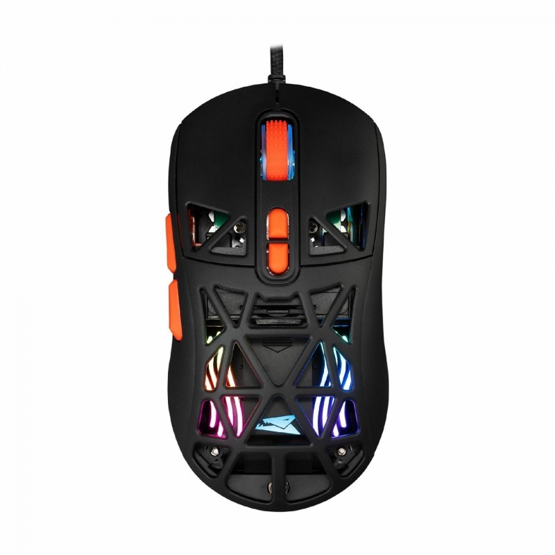 Igralna miška Baracuda BGM-091 z optičnim senzorjem, ločljivostjo 12800 DPI, 7 programljivimi gumbi, aktivno RGB osvetlitvijo, s pletenim kablom in frekvenco 1000 Hz ter življenjsko dobo več kot 10 milijonov klikov zadosti tudi potrebam zahtevnejših uporabnikov. Črne barve.