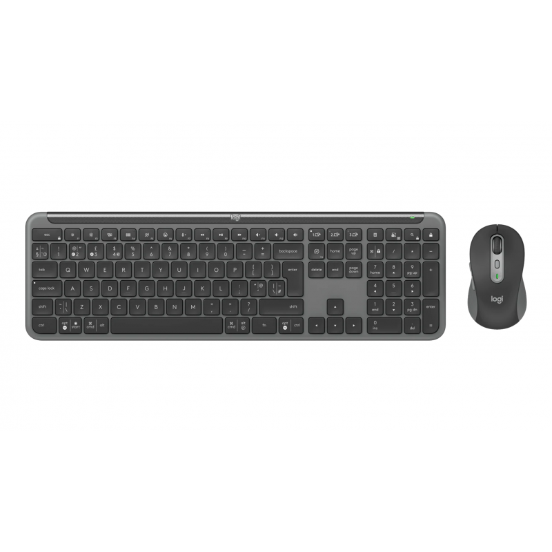 Logitech Signature Slim Combo MK950 združuje udobno tipkovnico polne velikosti in natančno brezžično miško. Bluetooth 5.1 LE in Logi Bolt sprejemnik omogočata stabilno povezavo brez kablov. Zaradi tihega tipkanja, številčnice in ergonomskega naklona je komplet odlična izbira za domače ali pisarniško delo.