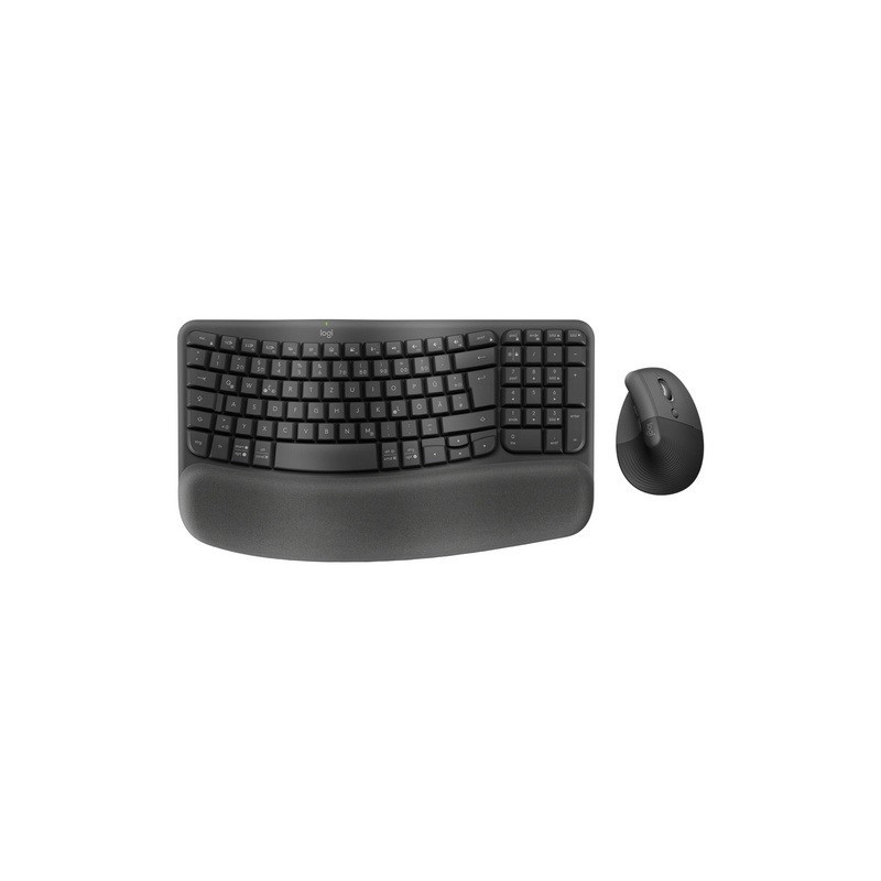 Komplet Logitech Wave Keys ergonomske tipkovnice in Lift vertikalne miške je zasnovan za bolj naravno in udobno držo med uporabo računalnika. Omogoča enostavno preklapljanje med tremi povezanimi napravami prek priloženega Logi Bolt USB sprejemnika ali Bluetooth povezave. Tipkovnica ima nastavljive nogice, ki povečajo naklon za 4°, kar pripomore k bolj ergonomskemu položaju rok med tipkanjem. Napajanje kompleta zagotavljajo dve AAA bateriji v tipkovnici in ena AA baterija v miški.