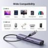 UGREEN USB C na USB 3.0 Hub je zasnovan s 3 hitrimi vrati USB 3.0, ki lahko preprosto pomagajo vaši napravi priključiti več dodatkov, kot so miška, tipkovnica, zunanji pogon, USB ključ in drugo. Sinhronizacija podatkov prek USB 3.0 lahko doseže do 5 Gbps, kar je 10-krat hitreje kot USB 2.0.široka združljivost: